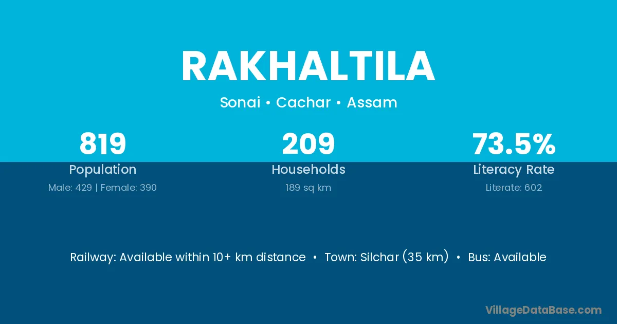 Silchar (35 km) is the nearest town to Rakhaltila village for major economic activities and is located approximately 35 km away.