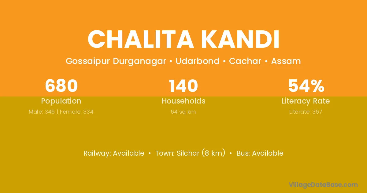 Silchar (8 km) is the nearest town to Chalita Kandi village for major economic activities and is located approximately 8 km away.