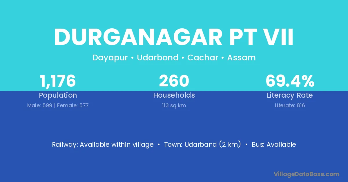 Durganagar Pt Vii village has a total population of 1,176 people, of which 599 are males and 577 are females.