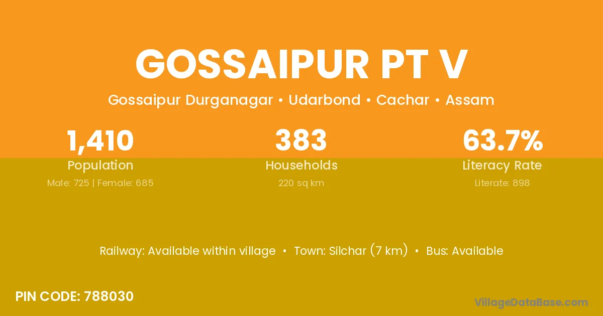 Silchar (7 km) is the nearest town to Gossaipur Pt V village for major economic activities and is located approximately 7 km away.