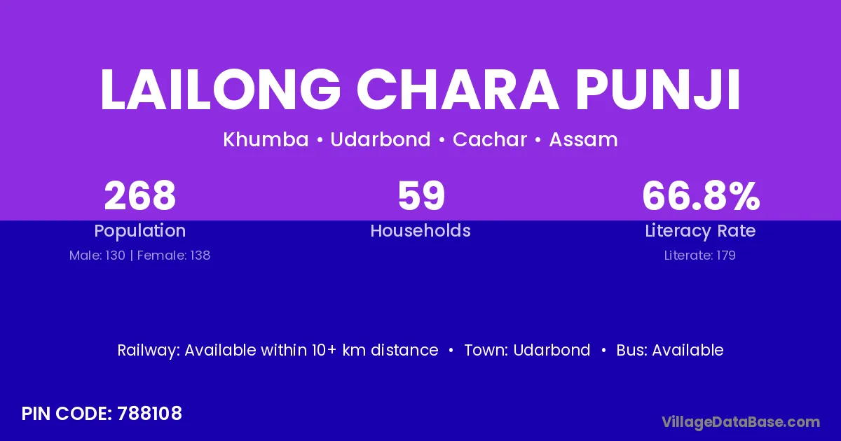 Lailong Chara Punji village is located in the Udarbond Subdivision of the Cachar district in Assam .