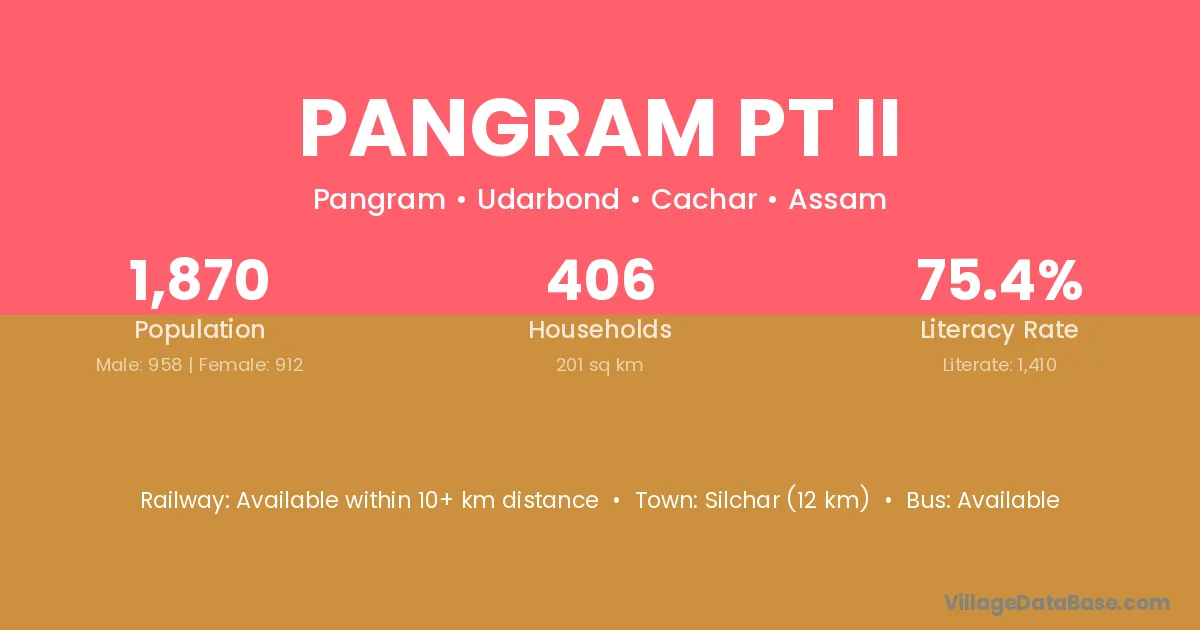 Pangram Pt Ii village has a total population of 1,870 people, of which 958 are males and 912 are females.