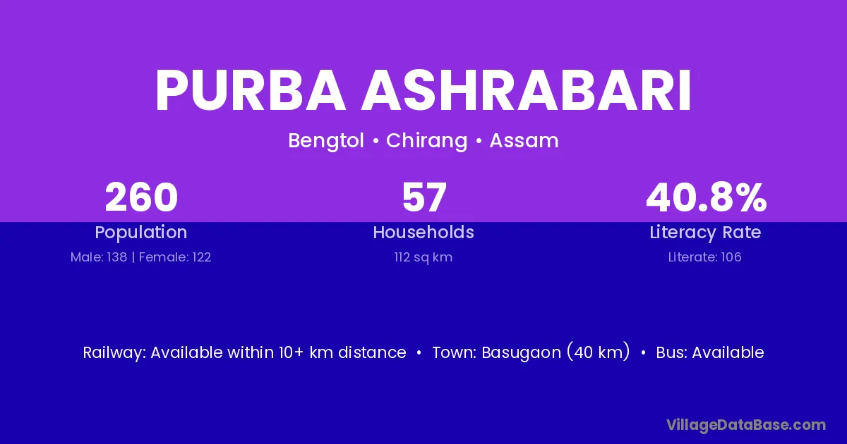 Purba Ashrabari village is located in the Bengtol Subdivision of the Chirang district in Assam .