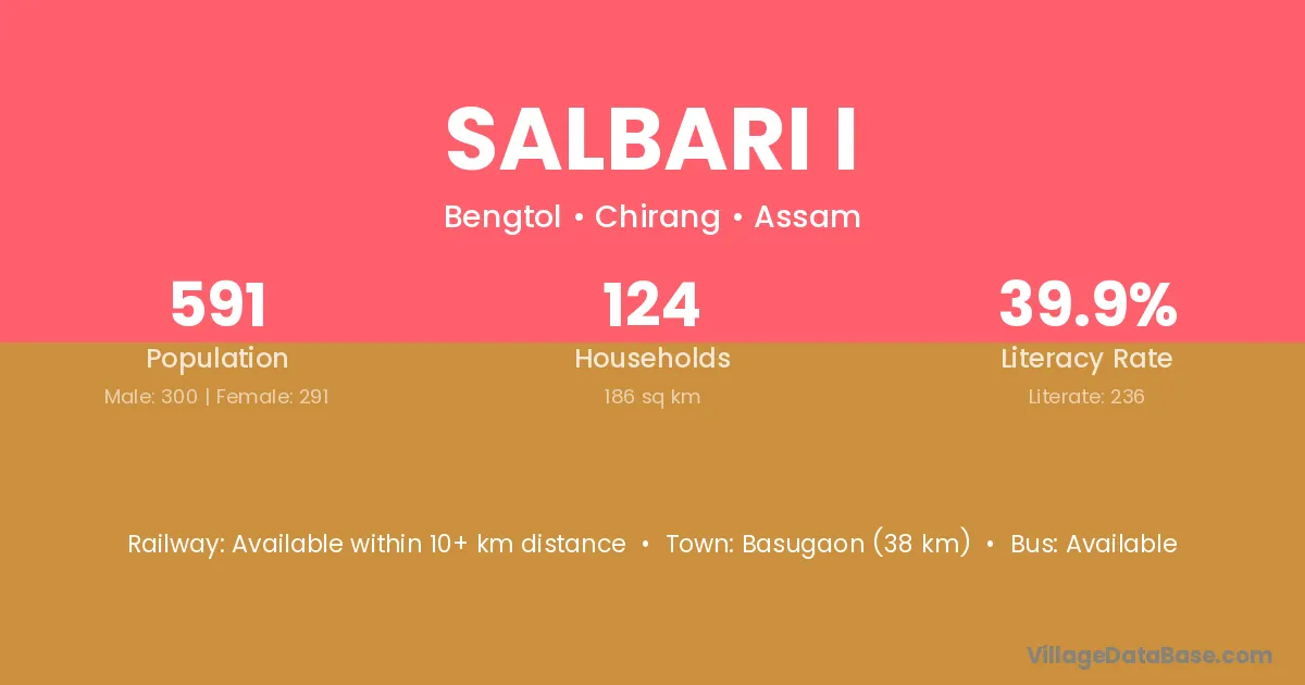 Salbari I village has a total population of 591 people, of which 300 are males and 291 are females.