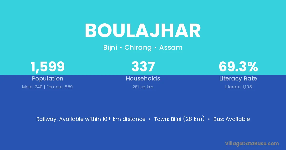 Bijni (28 km) is the nearest town to Boulajhar village for major economic activities and is located approximately 28 km away.