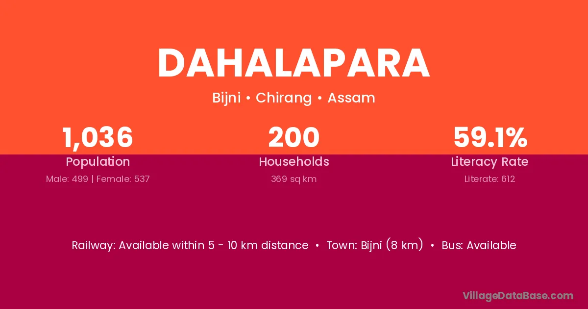 Bijni (8 km) is the nearest town to Dahalapara village for major economic activities and is located approximately 8 km away.