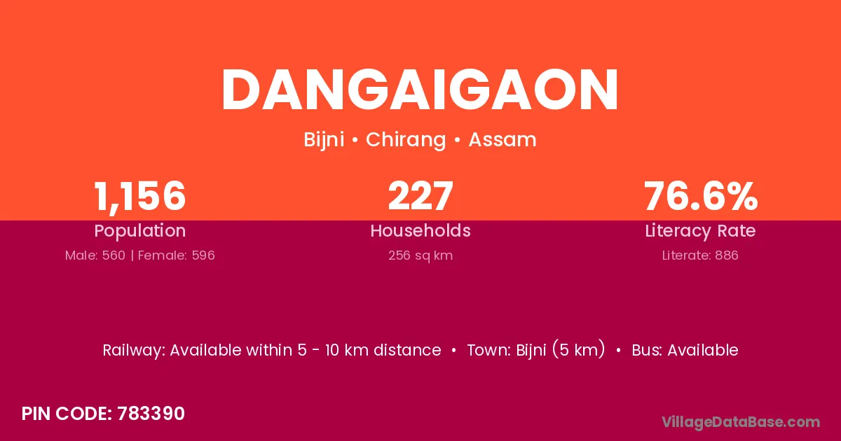 Bijni (5 km) is the nearest town to Dangaigaon village for major economic activities and is located approximately 5 km away.