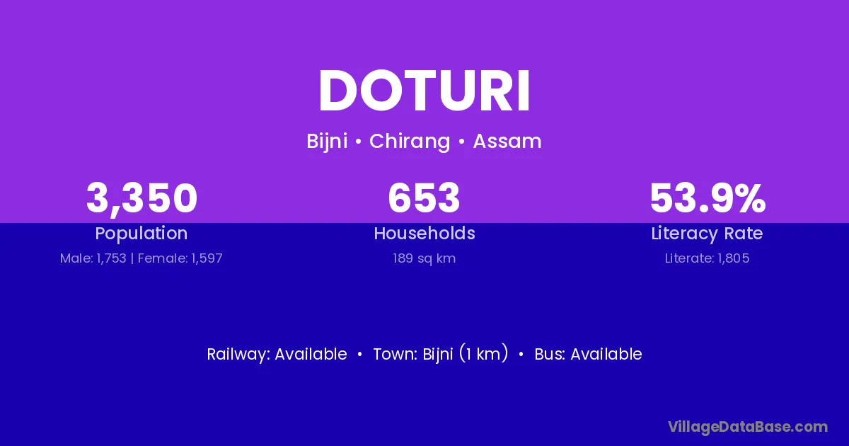 Bijni (1 km) is the nearest town to Doturi village for major economic activities and is located approximately 1 km away.
