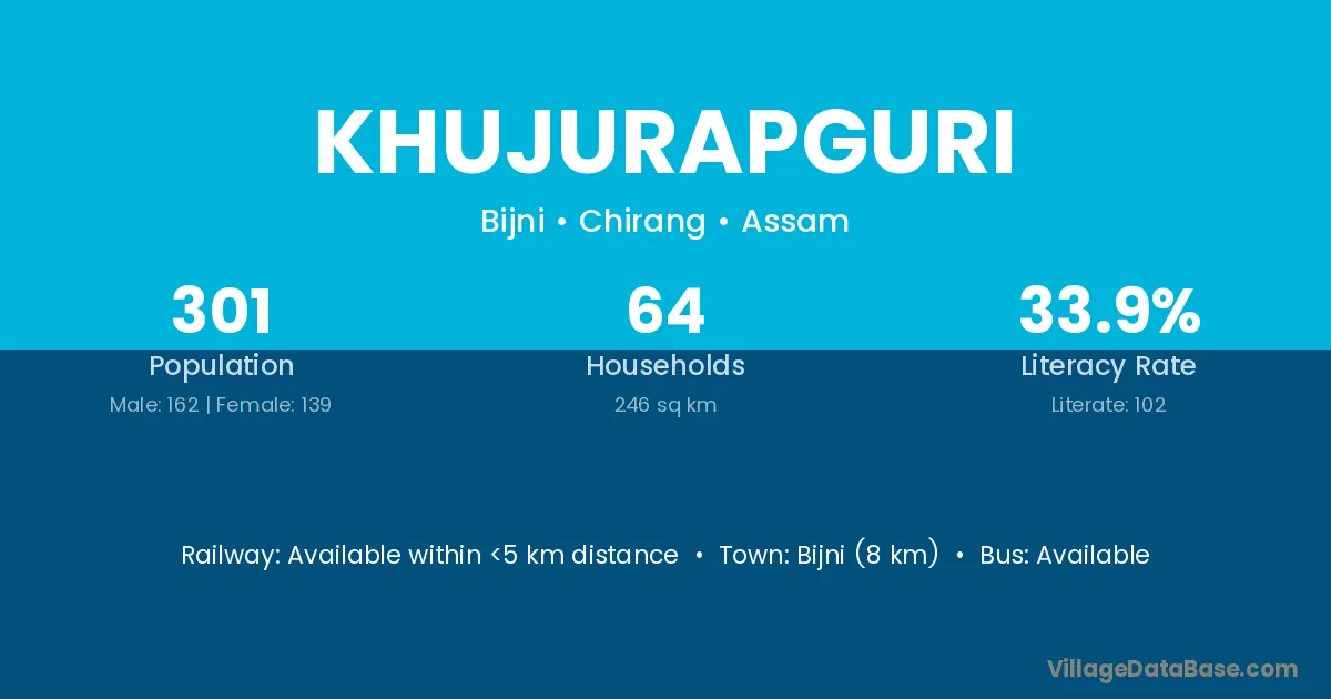 Bijni (8 km) is the nearest town to Khujurapguri village for major economic activities and is located approximately 8 km away.