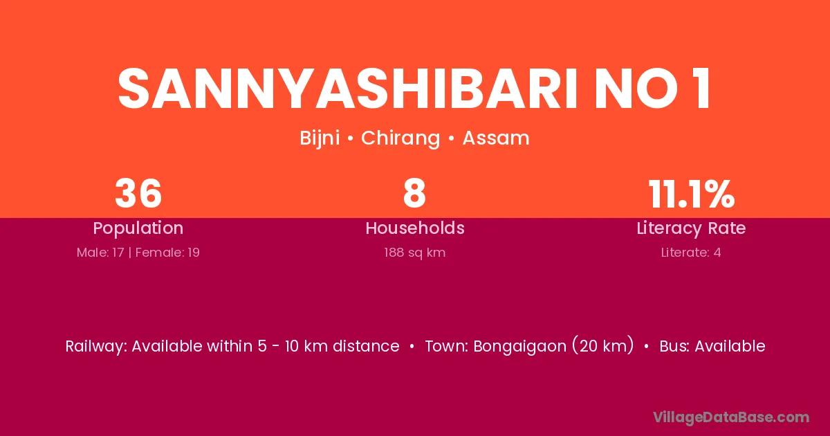 Bongaigaon (20 km) is the nearest town to Sannyashibari No 1 village for major economic activities and is located approximately 20 km away.