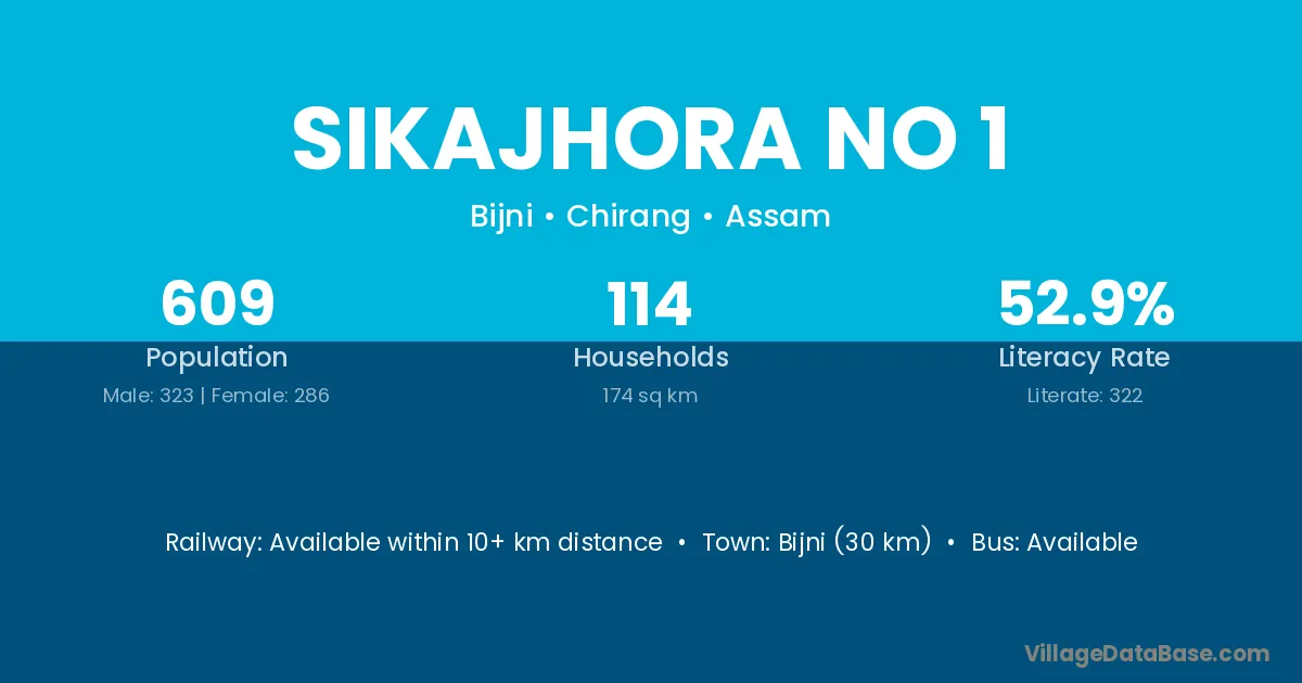 Bijni (30 km) is the nearest town to Sikajhora No 1 village for major economic activities and is located approximately 30 km away.