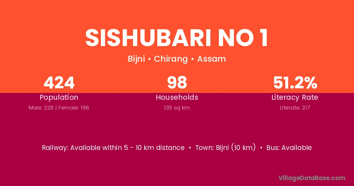 Sishubari No 1 village has a total population of 424 people, of which 228 are males and 196 are females.
