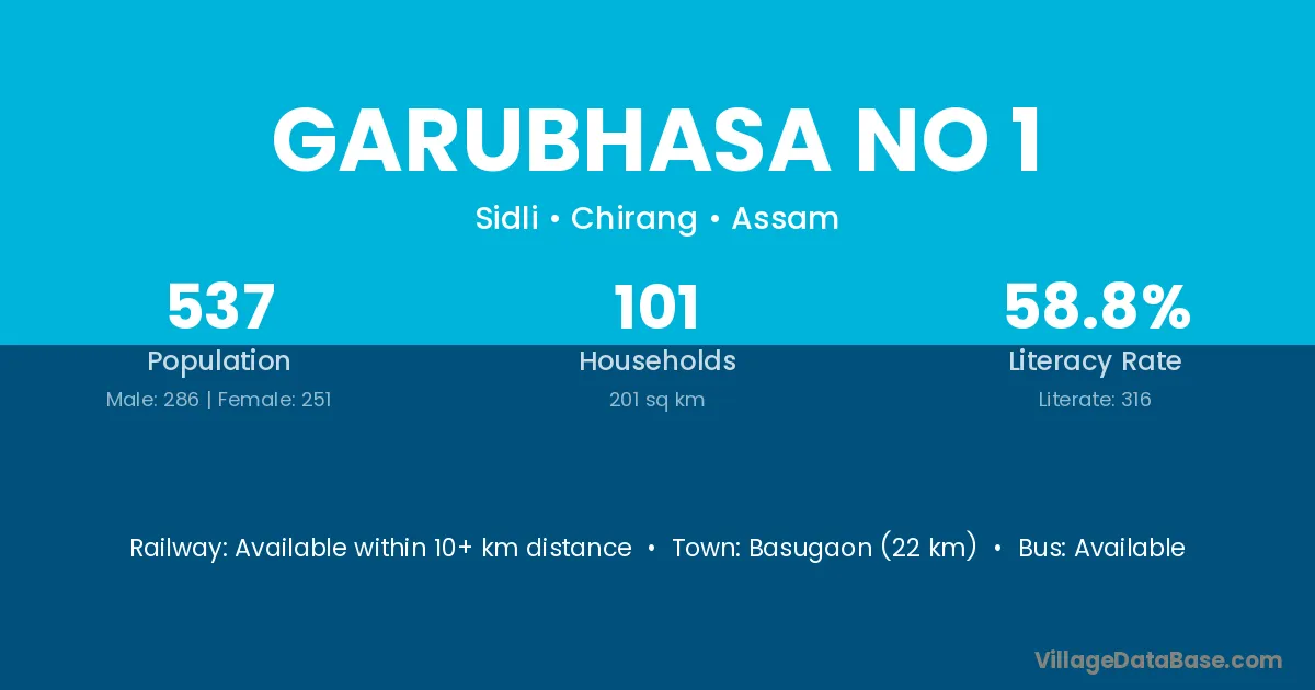 Basugaon (22 km) is the nearest town to Garubhasa No 1 village for major economic activities and is located approximately 22 km away.
