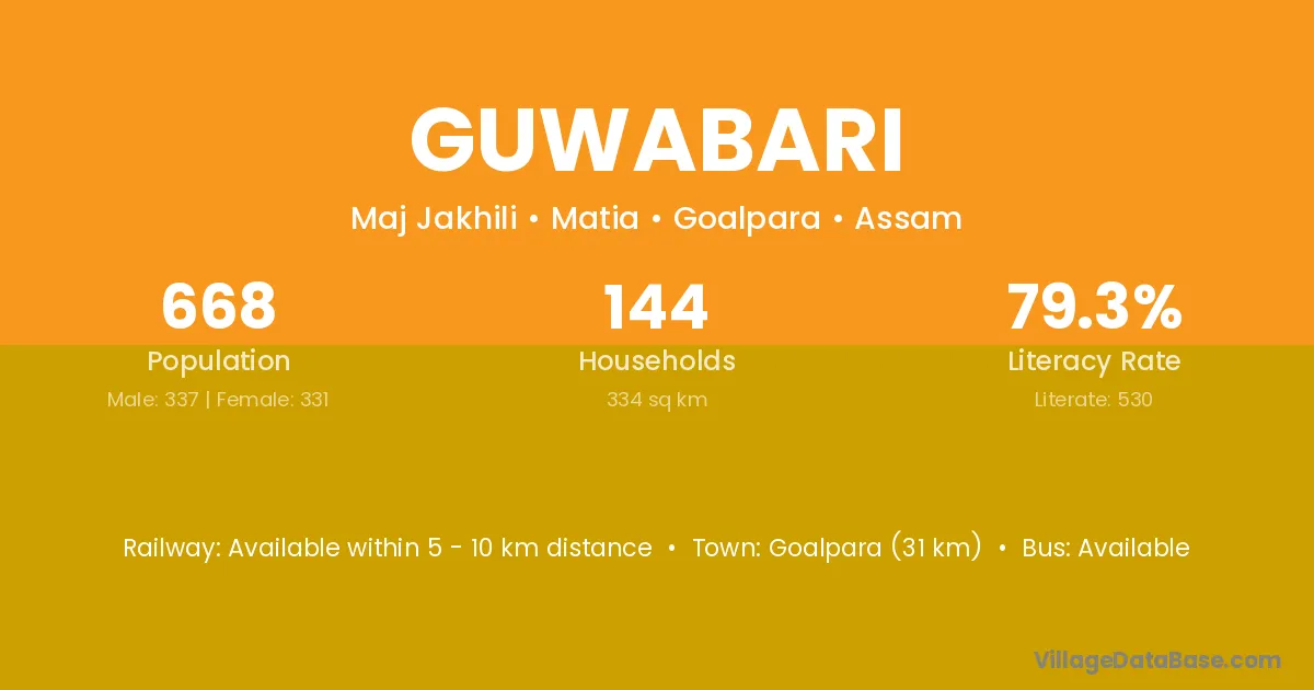 Basugaon (5 km) is the nearest town to Guwabari village for major economic activities and is located approximately 5 km away.