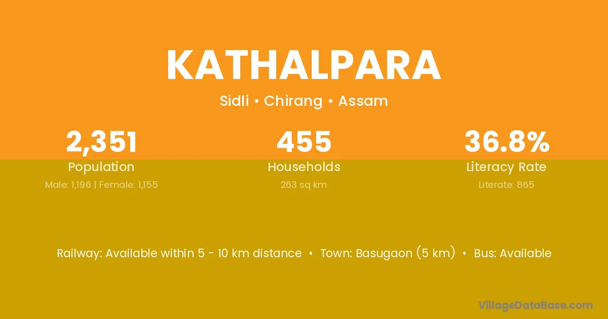 Basugaon (5 km) is the nearest town to Kathalpara village for major economic activities and is located approximately 5 km away.
