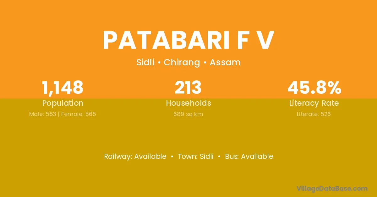 Patabari F V village has a total population of 1,148 people, of which 583 are males and 565 are females.