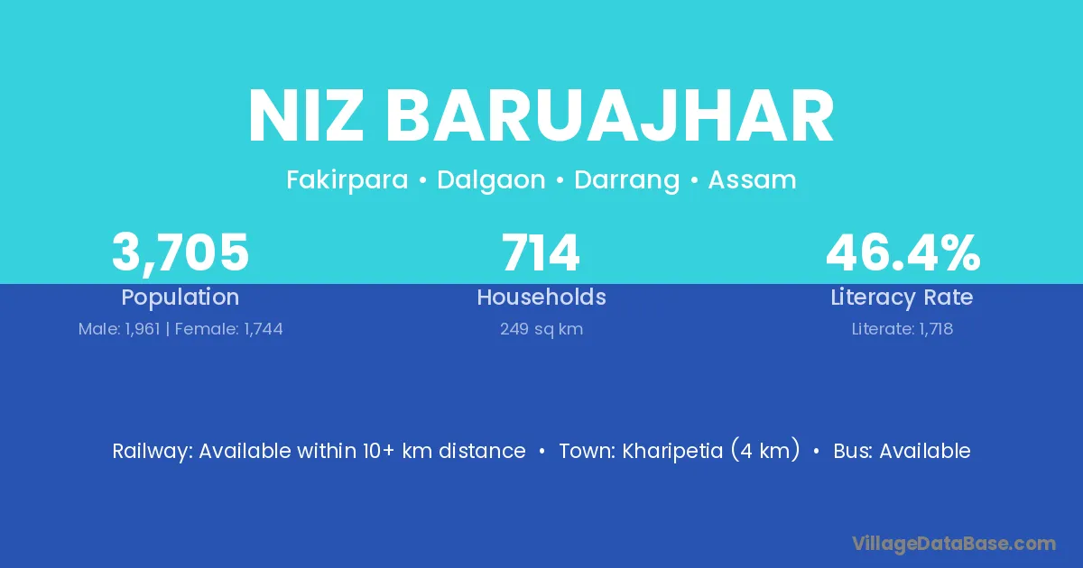 Niz Baruajhar village has a total population of 3,705 people, of which 1,961 are males and 1,744 are females.