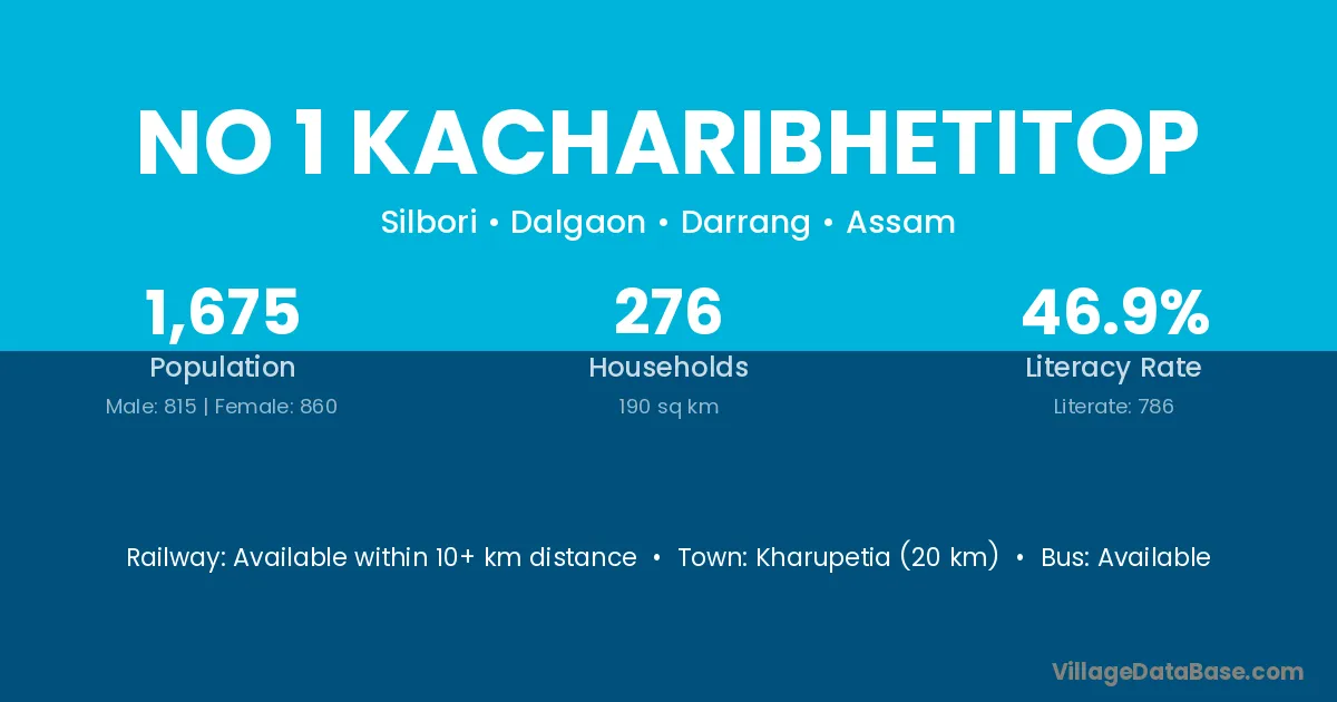 Kharupetia (20 km) is the nearest town to No 1 Kacharibhetitop village for major economic activities and is located approximately 20 km away.