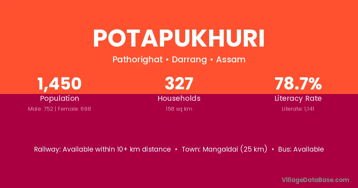 Potapukhuri village has a total population of 1,450 people, of which 752 are males and 698 are females.