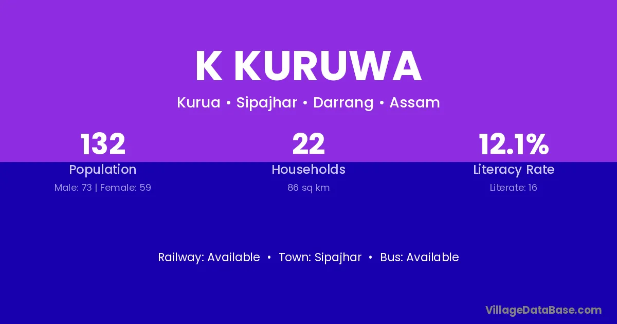 K Kuruwa village has a total population of 132 people, of which 73 are males and 59 are females.