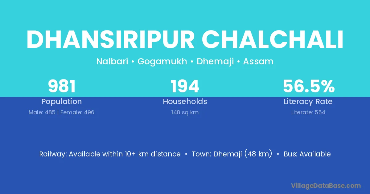Dhansiripur Chalchali village has a total population of 981 people, of which 485 are males and 496 are females.