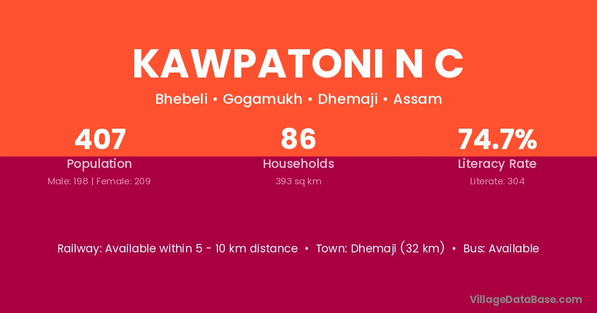 Kawpatoni N C village has a total population of 407 people, of which 198 are males and 209 are females.