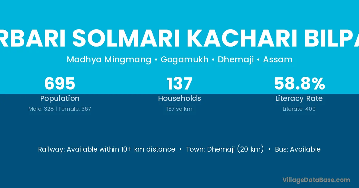 Naharbari Solmari Kachari Bilpathar village has a total population of 695 people, of which 328 are males and 367 are females.