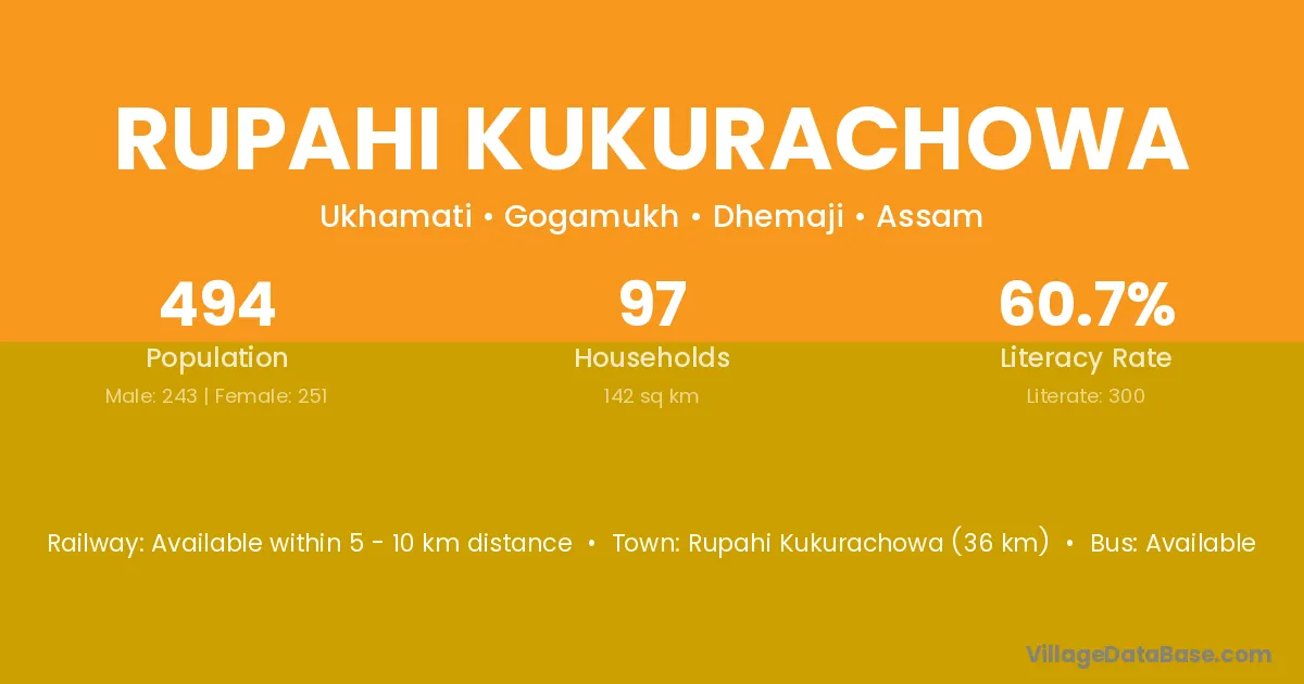 Rupahi Kukurachowa village has a total population of 494 people, of which 243 are males and 251 are females.