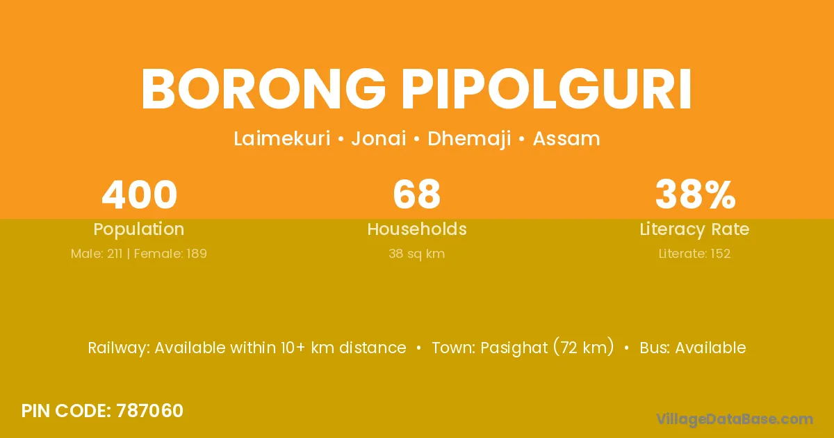 Borong Pipolguri village has a total population of 400 people, of which 211 are males and 189 are females.