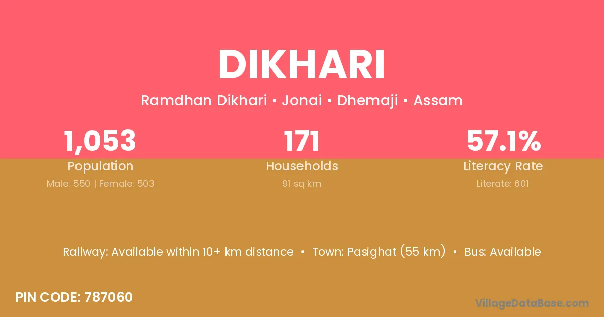 Dikhari village has a total population of 1,053 people, of which 550 are males and 503 are females.