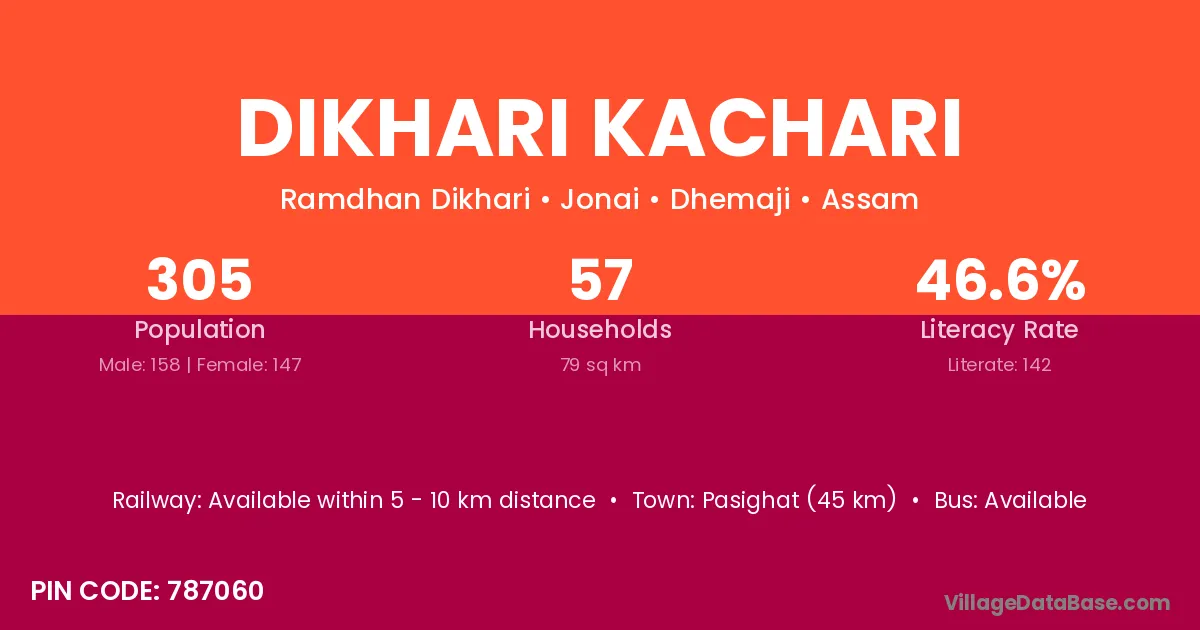 Dikhari Kachari village has a total population of 305 people, of which 158 are males and 147 are females.
