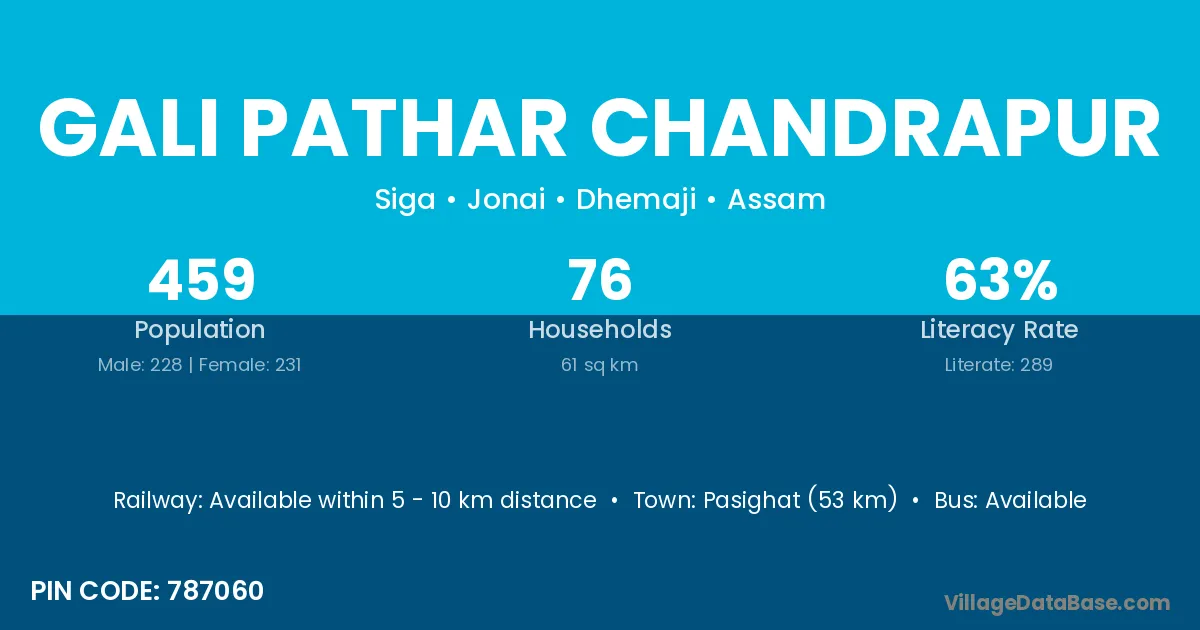 Gali Pathar Chandrapur village has a total population of 459 people, of which 228 are males and 231 are females.