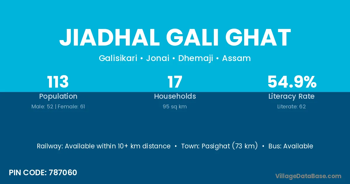 Jiadhal Gali Ghat village has a total population of 113 people, of which 52 are males and 61 are females.