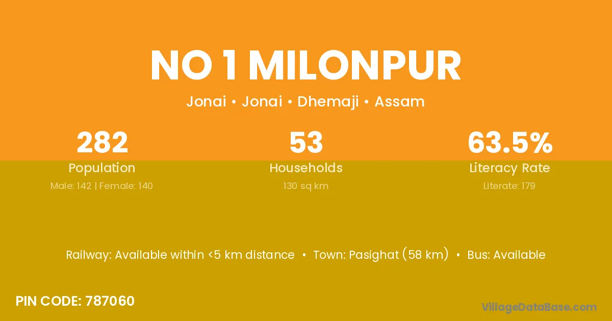 No 1 Milonpur village has a total population of 282 people, of which 142 are males and 140 are females.