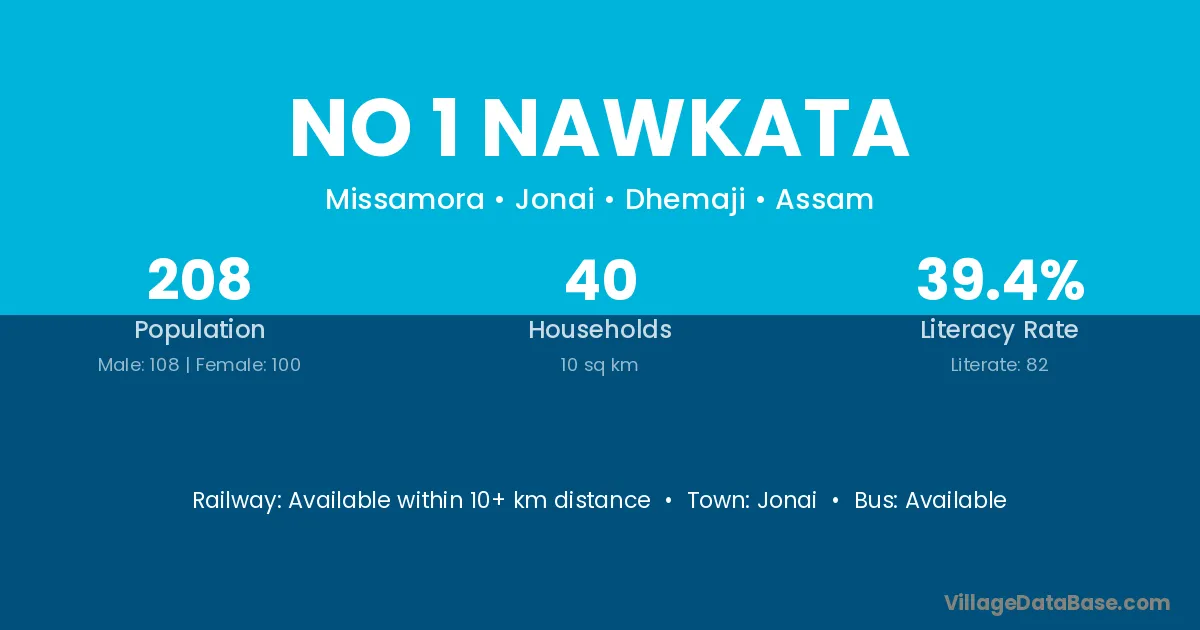 No 1 Nawkata village has a total population of 208 people, of which 108 are males and 100 are females.