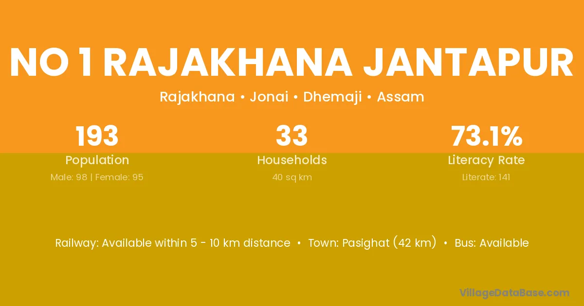 Pasighat (42 km) is the nearest town to No 1 Rajakhana Jantapur village for major economic activities and is located approximately 42 km away.