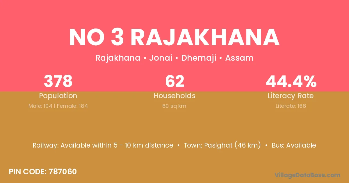 No 3 Rajakhana village has a total population of 378 people, of which 194 are males and 184 are females.