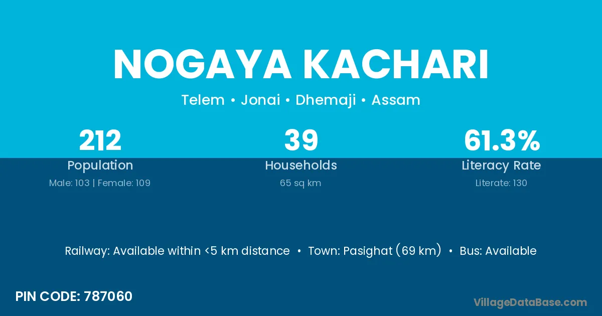 Nogaya Kachari village has a total population of 212 people, of which 103 are males and 109 are females.