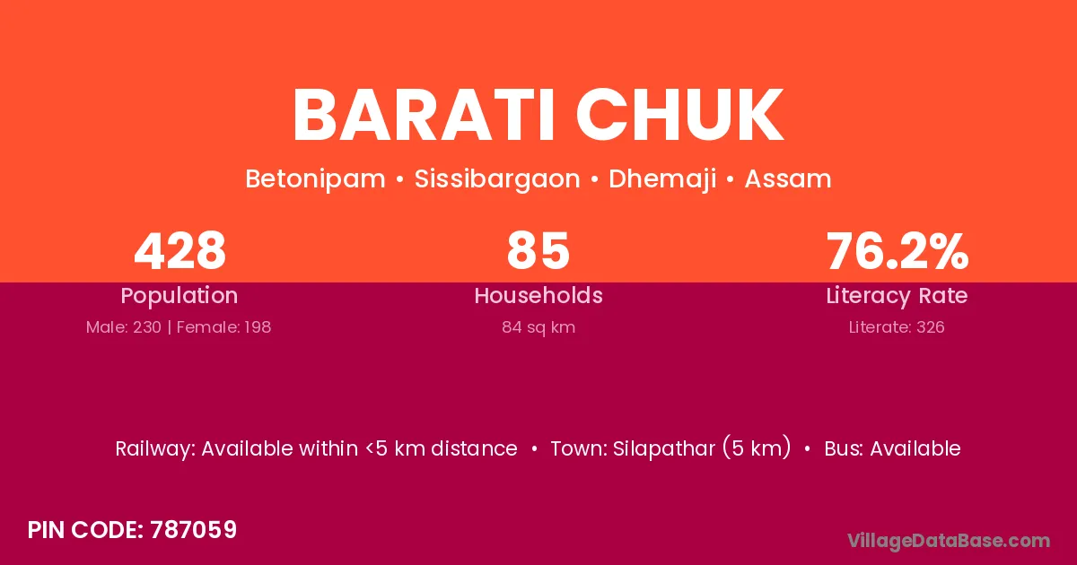 Silapathar (5 km) is the nearest town to Barati Chuk village for major economic activities and is located approximately 5 km away.