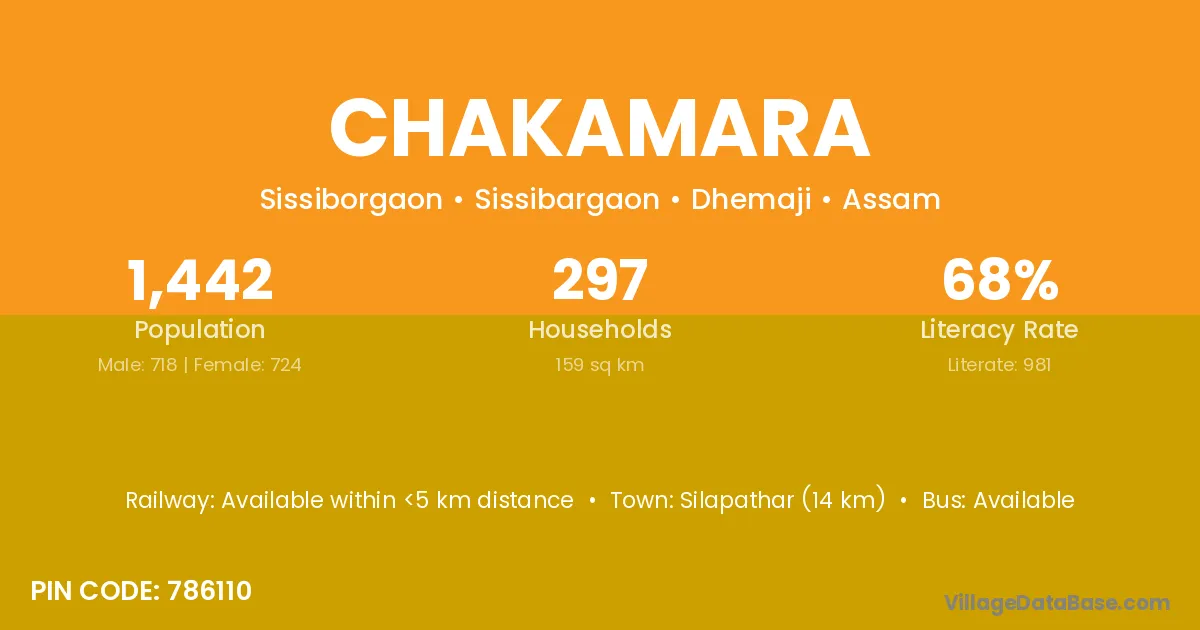 Silapathar (14 km) is the nearest town to Chakamara village for major economic activities and is located approximately 14 km away.