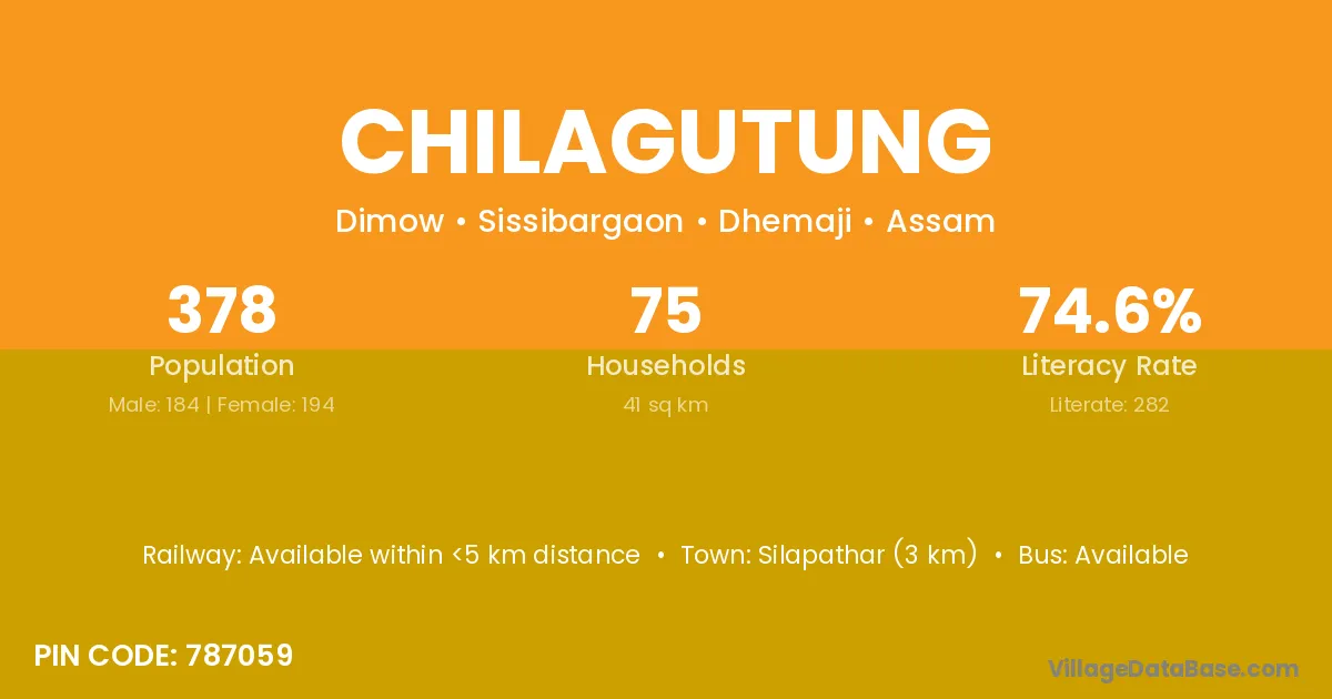 Silapathar (3 km) is the nearest town to Chilagutung village for major economic activities and is located approximately 3 km away.