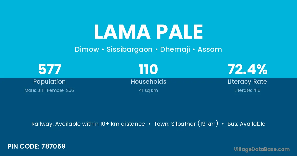 Silpathar (19 km) is the nearest town to Lama Pale village for major economic activities and is located approximately 19 km away.