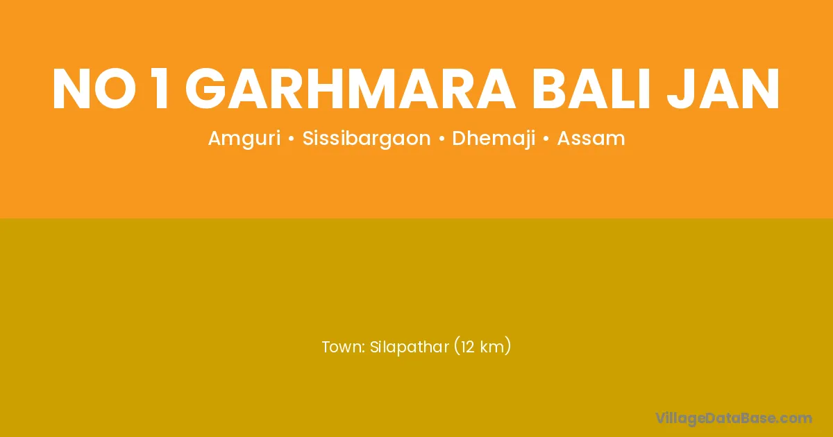 Silapathar (12 km) is the nearest town to No 1 Garhmara Bali Jan village for major economic activities and is located approximately 12 km away.