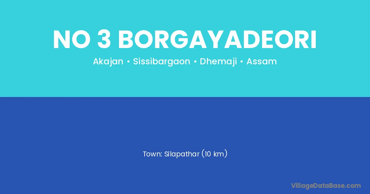 Silapathar (10 km) is the nearest town to No 3 Borgayadeori village for major economic activities and is located approximately 10 km away.