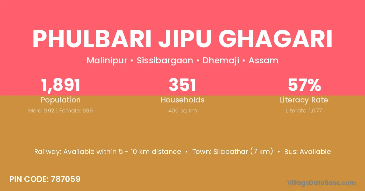 Silapathar (7 km) is the nearest town to Phulbari Jipu Ghagari village for major economic activities and is located approximately 7 km away.