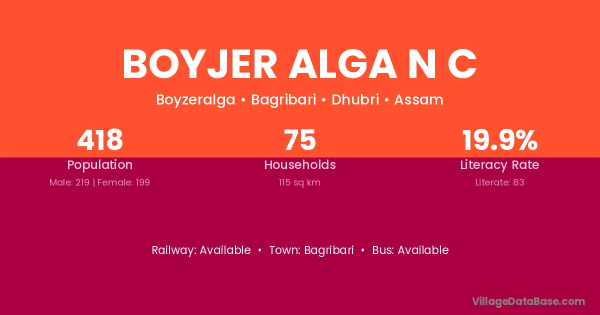Boyjer Alga N C village has a total population of 418 people, of which 219 are males and 199 are females.