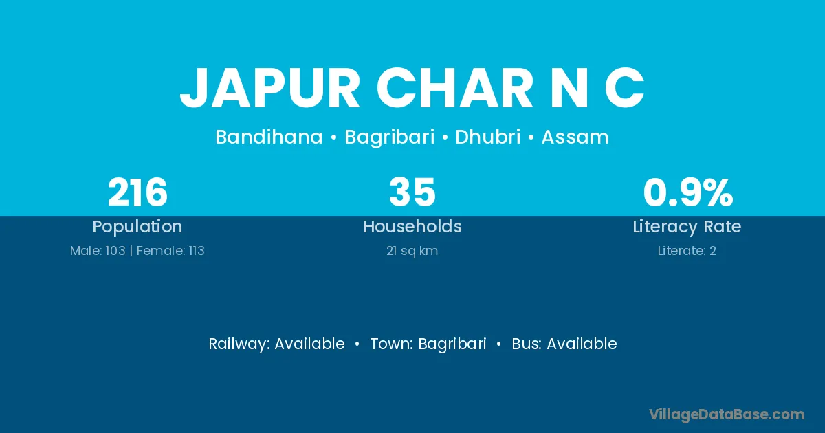 Japur Char N C village has a total population of 216 people, of which 103 are males and 113 are females.