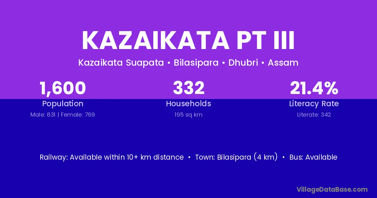 Bilasipara (4 km) is the nearest town to Kazaikata Pt Iii village for major economic activities and is located approximately 4 km away.