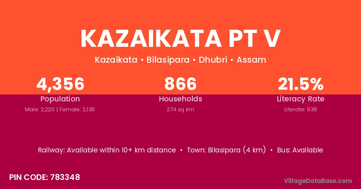 Bilasipara (4 km) is the nearest town to Kazaikata Pt V village for major economic activities and is located approximately 4 km away.
