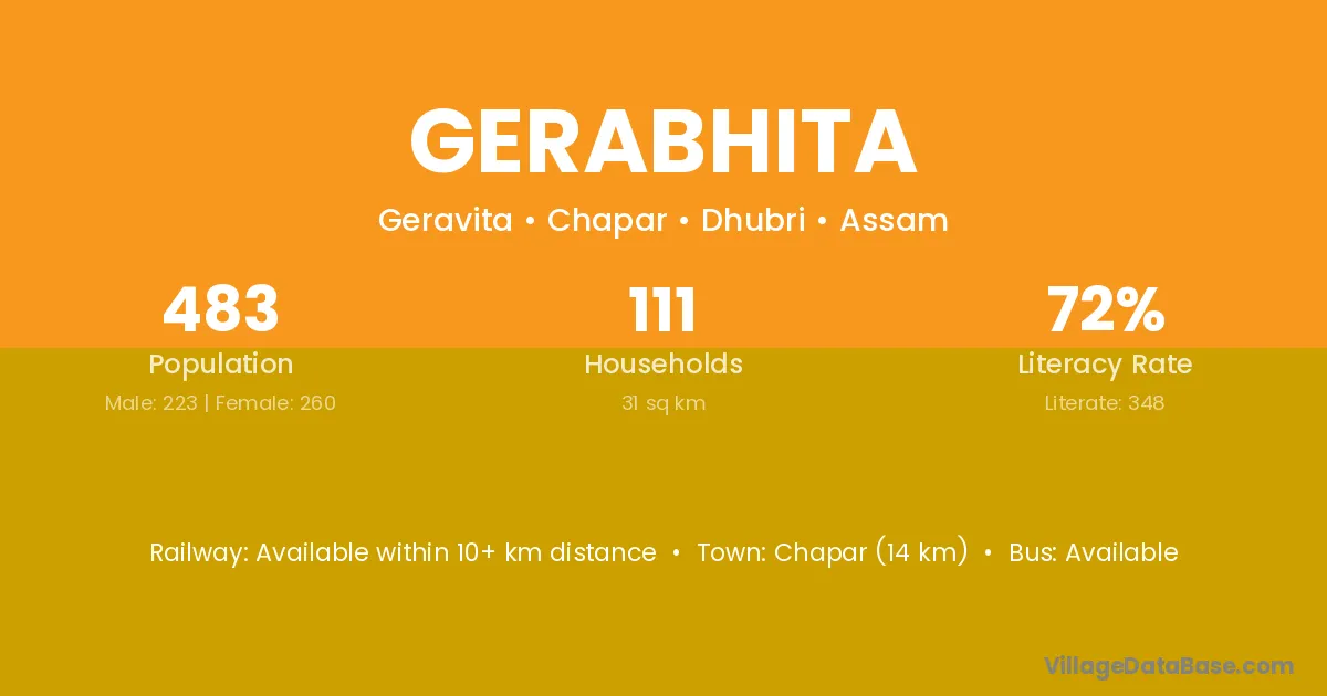 Chapar (14 km) is the nearest town to Gerabhita village for major economic activities and is located approximately 14 km away.